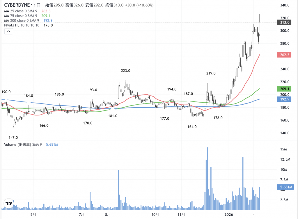 そうして…工作機械などの「設備投資」も盛り上がって来ました。だから「フィジカルAI」関連の株も、仕手系では「サイバーダイン」(7779)も市場の人気株になっています。まだ基本的に早いのですが、最近は、世界のファンドが米国基準で株を考えるようになって来ました。