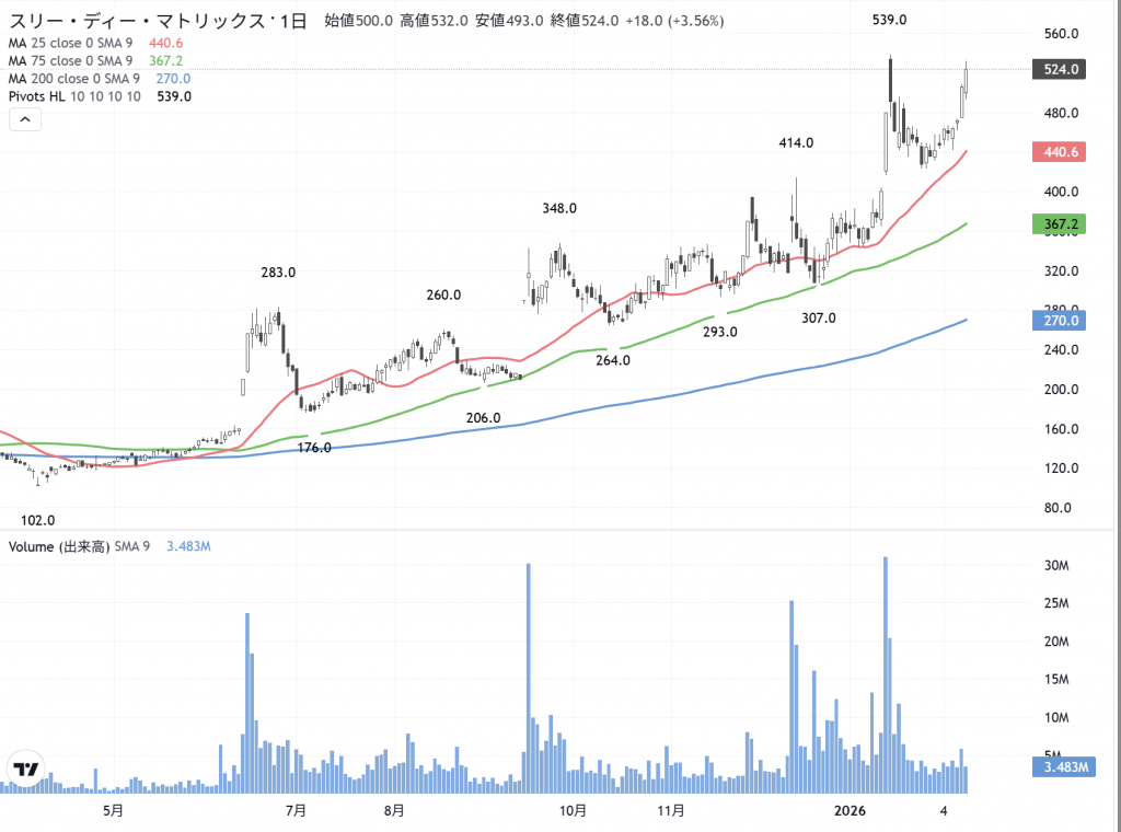 あらら…また利食いが出来ましたね。「3Dマトリックス」(7777)の話です。やはりね。まもなく高値更新でしょう。先週だったかな? 先々週だったか…この下げを丹念に5円刻みで株を買いました。…と言っても僅か1000株ずつなのです。