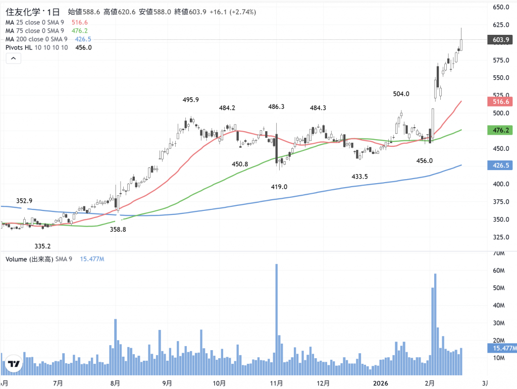住友化学(4005) の日足