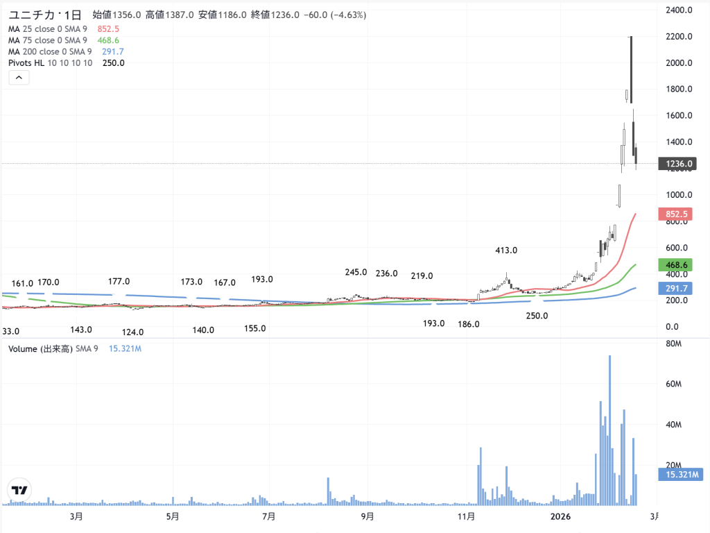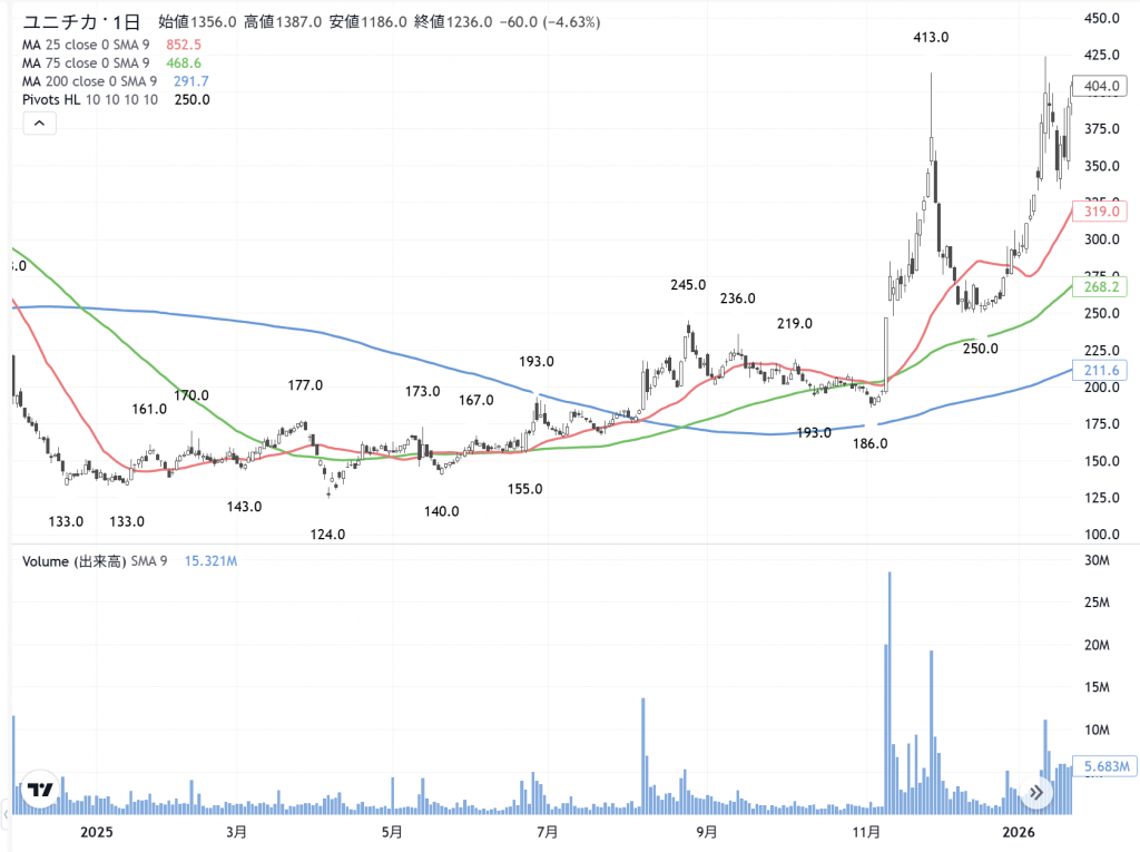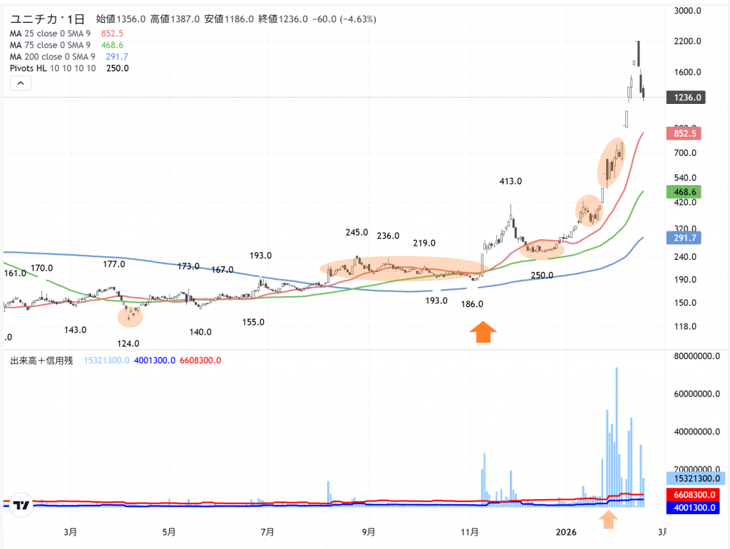 大きく上がる前のユニチカ(3103) の日足