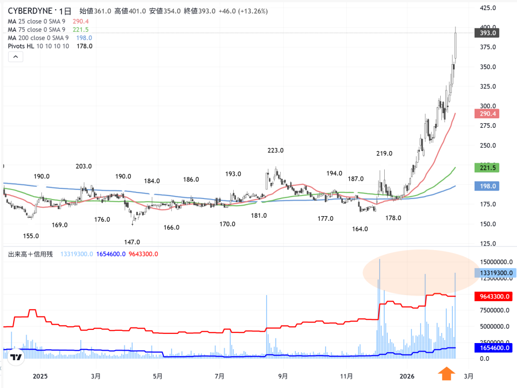 しかし貸借株の方が、断然、相場は面白いから…サイバーダイン(7779)が候補になりました。「黒字転換」は確定でしょう。医療から物流の「サイボーグ」の提供です。問題はこのまま一気に立ち上がり続けるのか? それとも…一度、ユニチカのような…「クッション」(乖離調整の初押し)を入れてから、一気に立ち上がるのか?