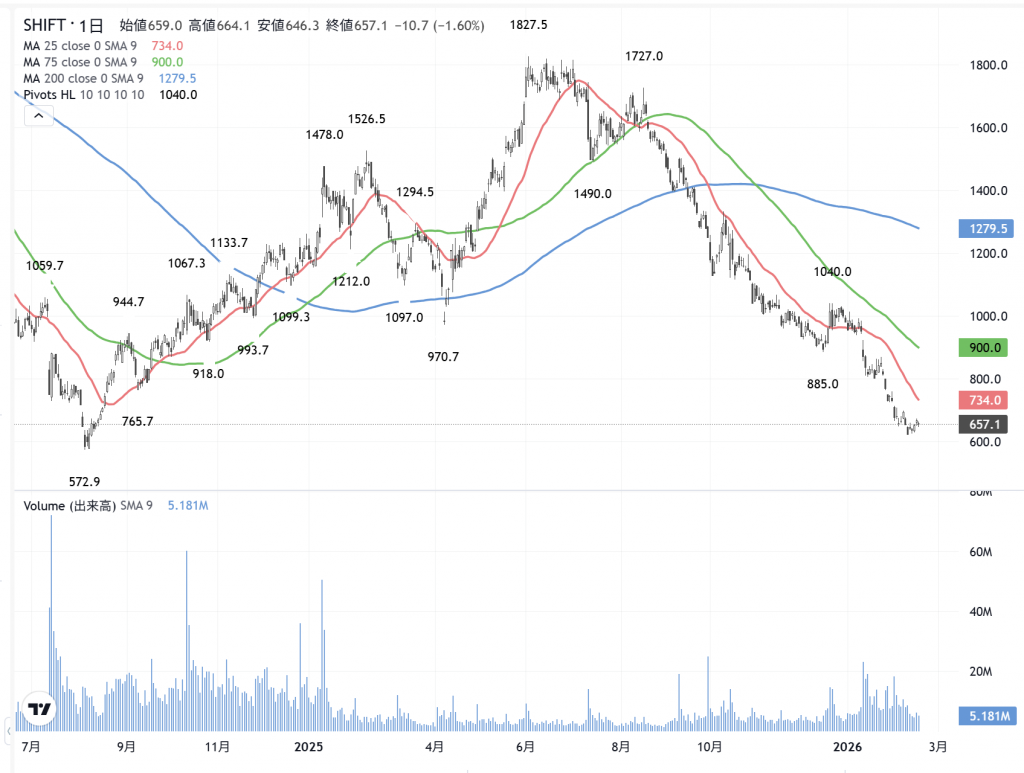 SHIFT(3697)の 日足