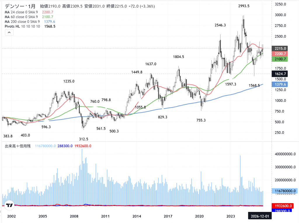 「デンソー」(6902) の月足