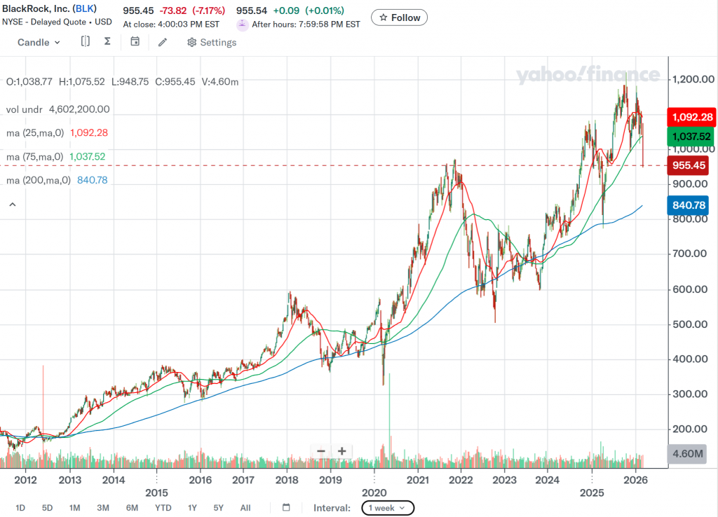 ブラックロック(BLK)の週足推移