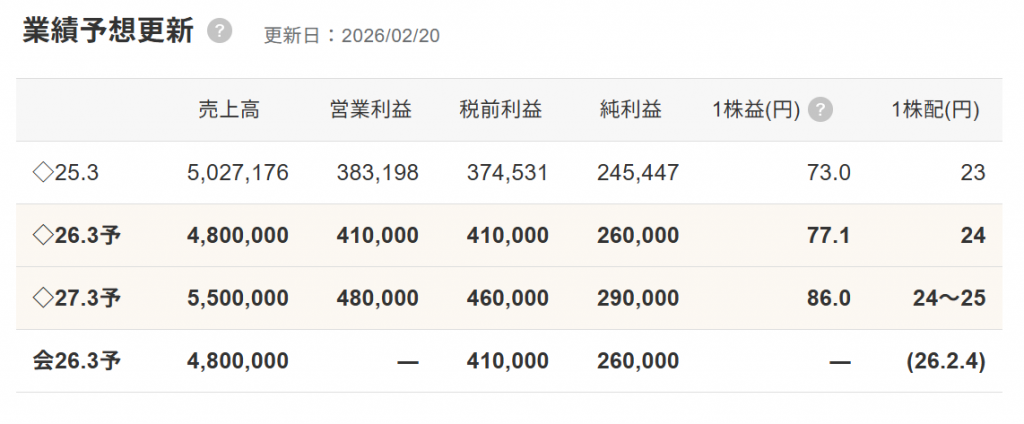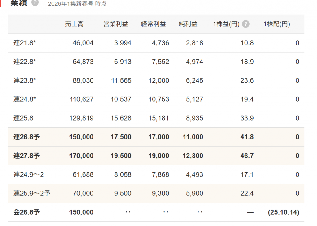 だから…実際に、来期の数字が見える時まで、株価は調整を続ける可能性が高いと思っていますが、この手の株が「貸借株」だと面白いです。今の2027年の四季報が打ち出している予想の115億円は、たぶん「増額修正」されるでしょう。仮に30%以上の伸びで150億円台ラインになるなら…この収益性は更に延びます。この確認が出来るなら、株価は4桁に乗せても不思議ではありません。単に今は「時間軸の話」だけの問題でしょう。だから時間を覚悟して…打診買いを始めるのも「一つの考え方」です。