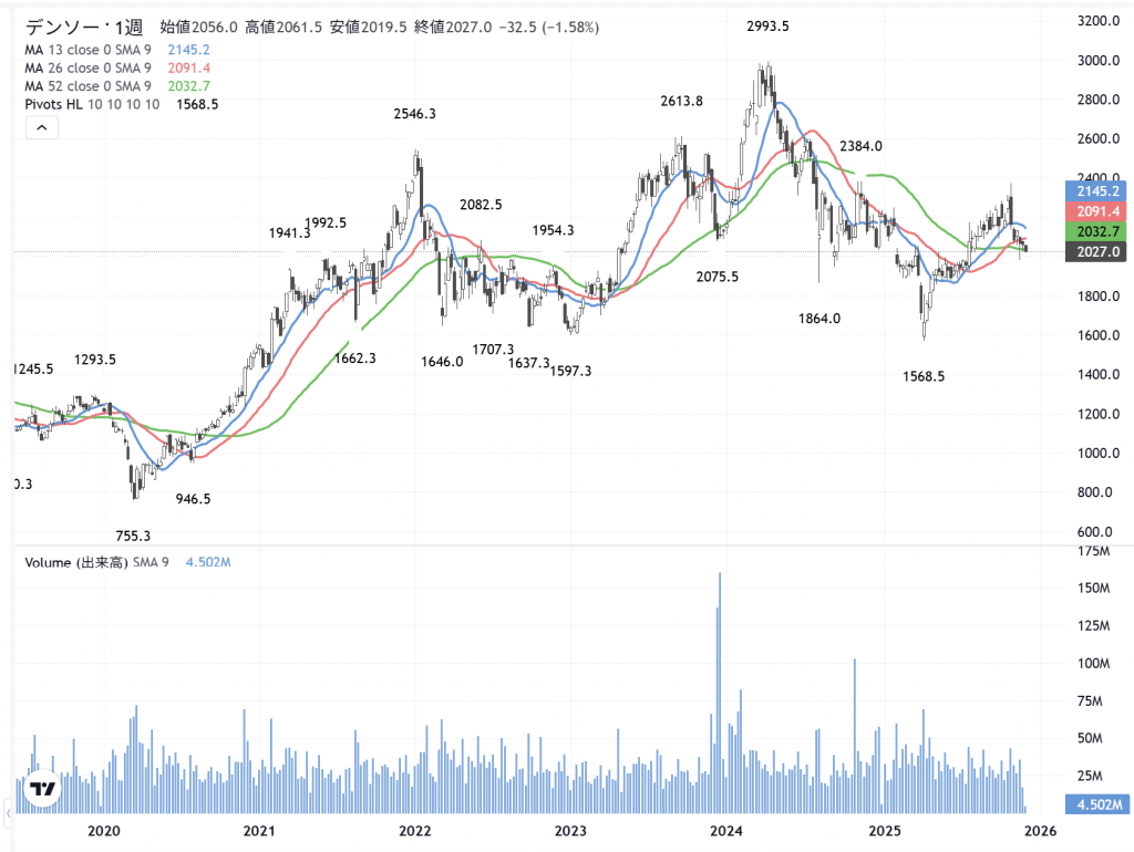 まぁ「デンソー」は「トヨタ自動織機」(6201)の絡みがあり…相場が遅れています。「ルネサス」は、順調な過程に見えます。今は2000円以下で、いくらでも買えますが、来年の春頃は、既に2000円以下では買えないのでしょう。
