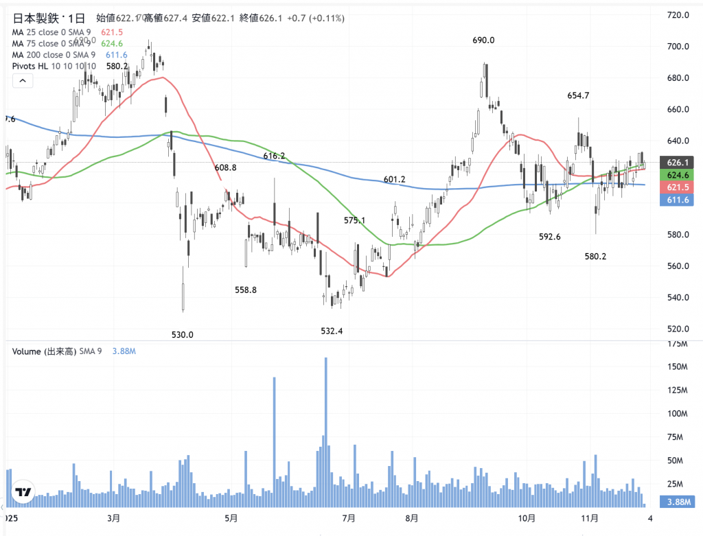 でも「野村証券」は、たかが知れています。やはり小型の「成長株」が魅力的です。株式投資は「成長力が命」だろうと思います。株式投資には、他に「配当利回り」を基準にする「投資」も在ります。「日本製鉄」(5401)の今は「面白そうに」見えます。なにしろ「USスチール」への投資です。しかも米国は「貿易赤字」を気にしています。