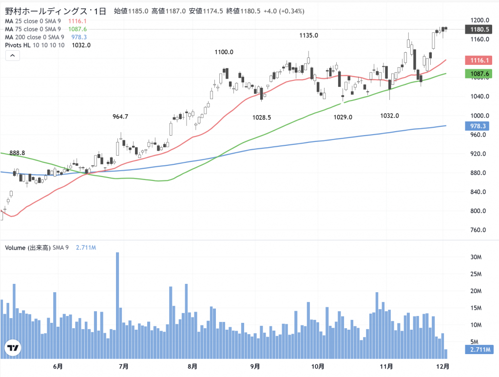 「野村証券」(8604)も同じです。此方は、まだ…「本格的な相場」になっていませんが、必ず、市場人気を席巻する場面が来ます。その時に「熱くならず」、手持ちの株を冷静に売り上がって、少なくとも…自分が「投資した元本」を回収しましょう。「儲けの残り」なら…いつまでも、時間を待つことが出来ます。