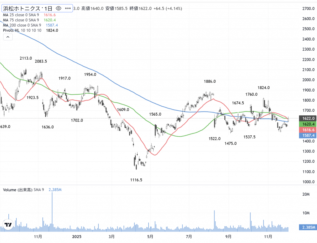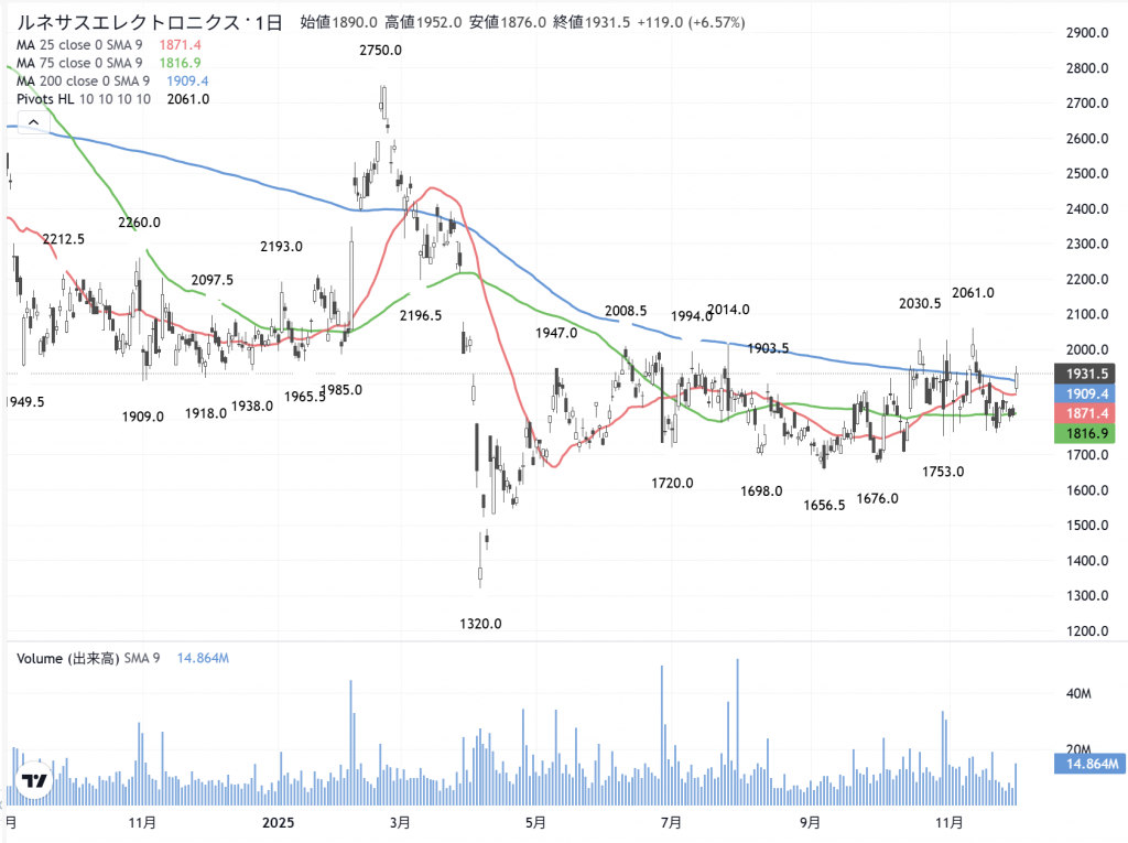 昨日は、注目している「ルネサスエレク」(6723)が大幅高していました。基本的に来年の銘柄ですから…高く成れば「利食い」を先行させて下がった所を買うなら、何回も、何回も小幅ですが相場を楽しめます。このチャートを観てください。
