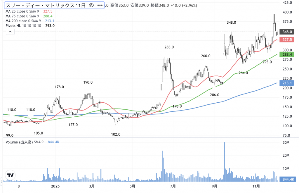 「3Dマトリックス」(7777)は、基本的に「目先の部類」でしょう。だって株価位置は、かなり上がりました。カタルは、昨年に10万株を買ったのでしょう。でもこれも「ジェイドG」の腐れ縁で…充分な効果を発揮していません。ですが…実際に株価は、既に3倍以上です。だから通常の感覚では「無料になった株」…儲けの残りを残して、ノンビリ構えれば、良いのでしょう。何れ…4桁から、2000円、3000円になるかもしれません。