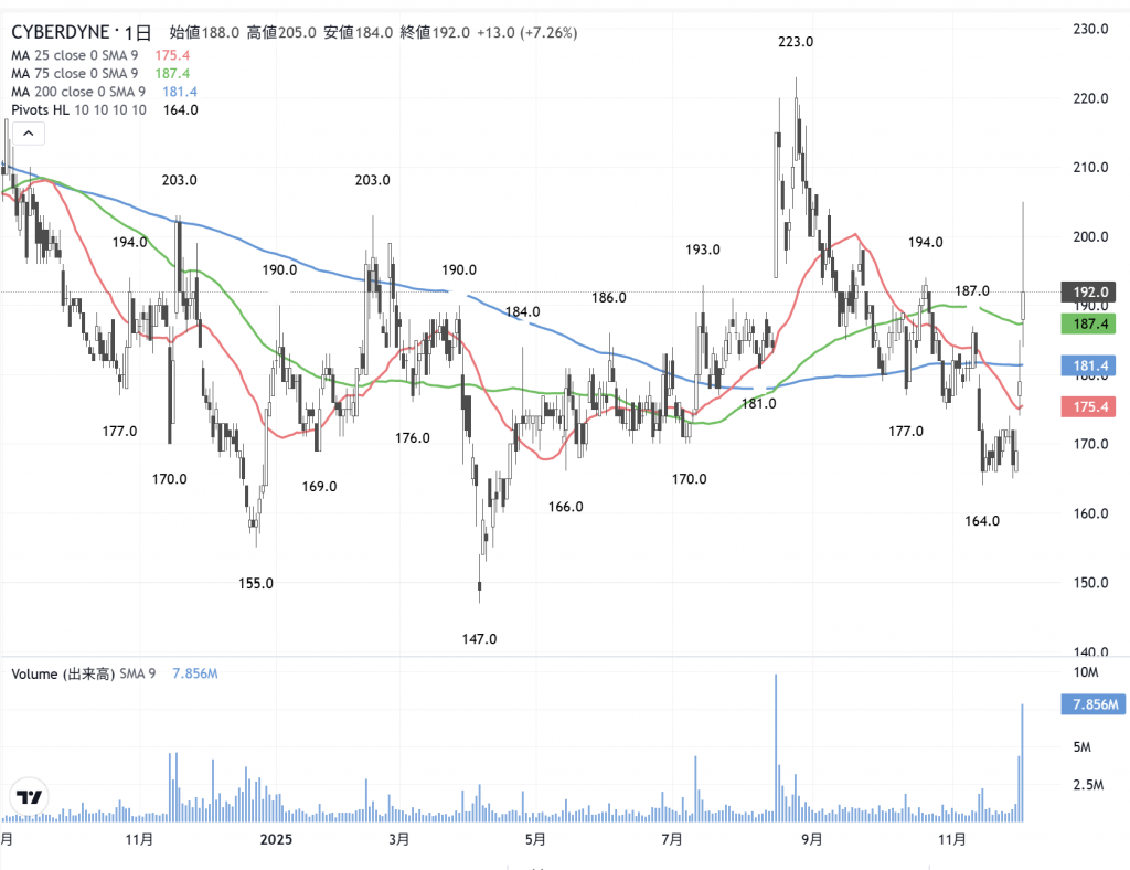 嬉しいな…「サイバーダイン」(7779)の株価が上がって来ました。昨年の「NISA」の失敗作です。確か…200円台の買いでした。未来において…大きくなりそうな株は、沢山あります。でも時間が分かりません。