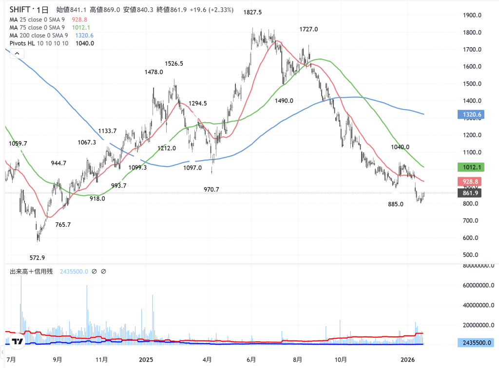 このユニチカは、如何でしょう。果たして「SHIFT」(3697)がどうなるか…興味があります。単に…企業業績と株価の関係では「ライズコーポレーション」(9168)の方に軍配は上がります。しかし相場の面白さなど…いろんな面で、ライズも悪くないですが、「SHIFT」って…面白そうですね。