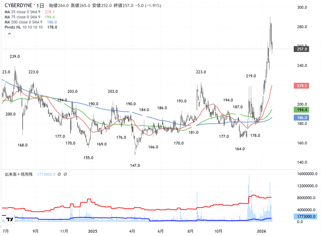 高い乖離の「サイバーダイン」(7779)