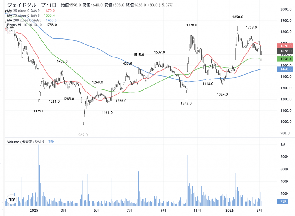 しかし…時代の流れはドンドン…欧米化しますね。だってネットを観れば、誰でも現実が分かります。うちのかみさんのレベルが日本人の一般的な感覚でしょう。今日は日経平均株価が2300円も上がっているから、自分達が持っている株も上がると思っています。カタルはジェイドG(3558)は1650円を割れないと思っていたのです。1700円割れは何処でも買い場だろうと思っていましたが、敢え無く…1600円割れ、流石に75日線になったからカタルは別口座でも1550円の所から買い始めました。