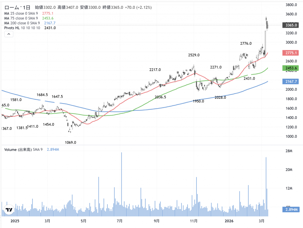 更に、昨日は300円割れを買えませんでしたが、305円前後で5000株程を追加で買った「初押しは買い」のサイバーダイン(7779)です。3Dマトリックス(7777)は小型の現物株ですが、サイバーダインやSHIFTは「貸借株銘柄」です。