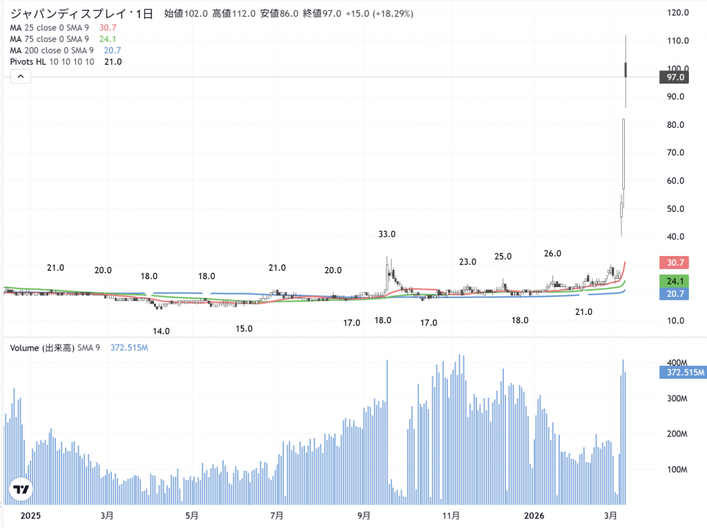 Jディスプレイ(JDI=6740) の日足