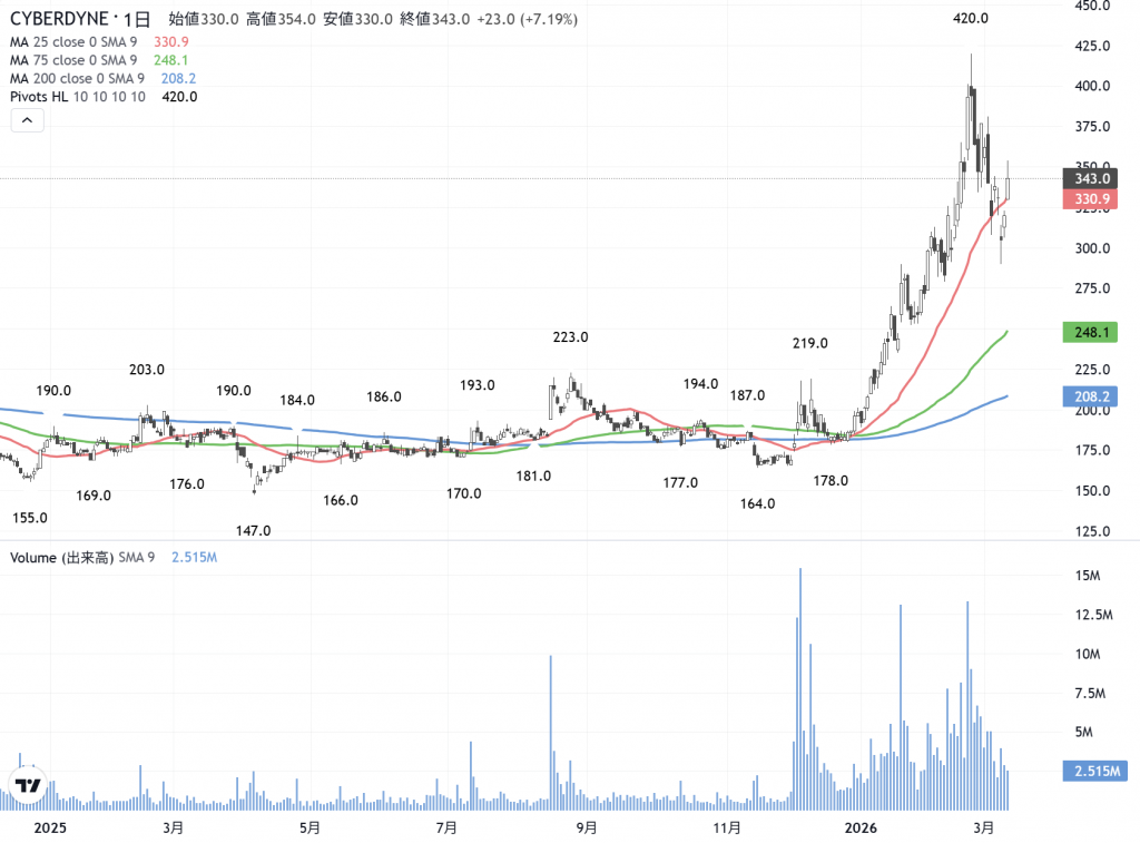 サイバーダイン(7779) の日足