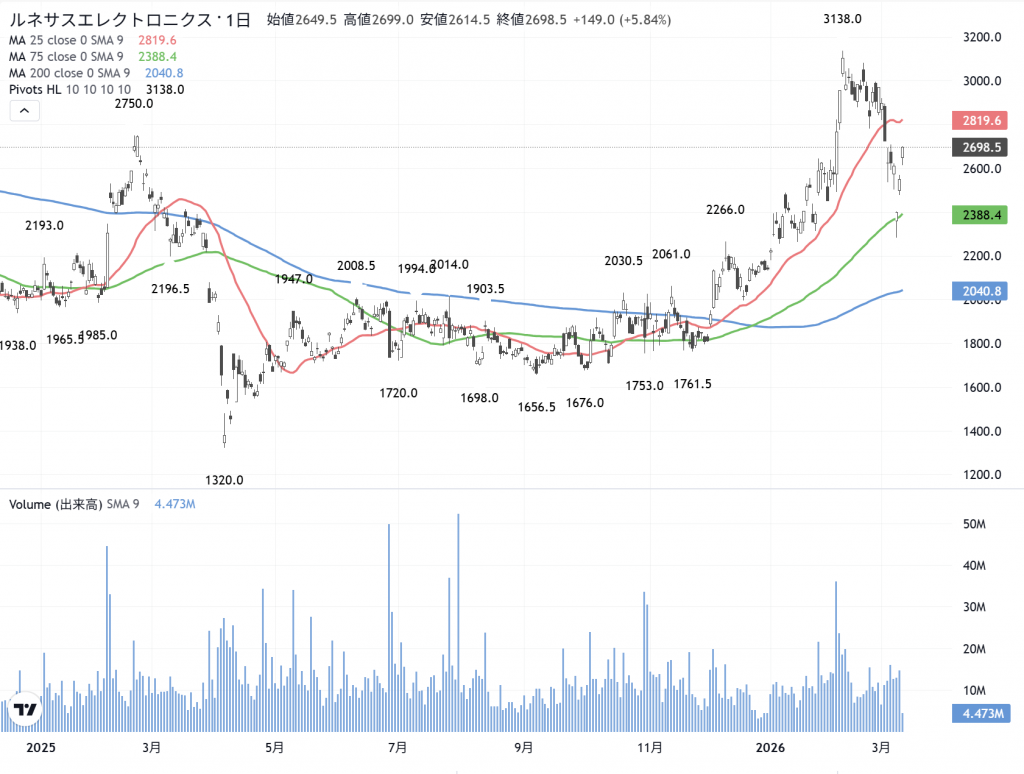 ルネサスエレク(6723) の日足