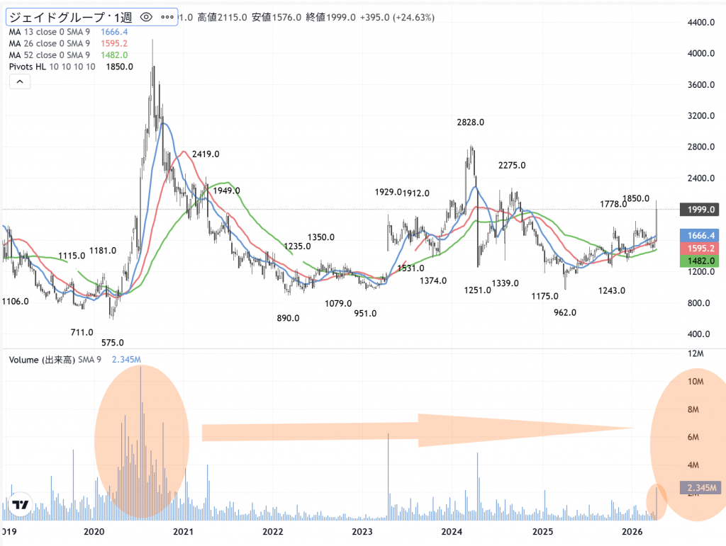 我々は正しい基礎知識を得て…正当な株価を創る「ラッセル」集団です。しかし…正当な株価になったら、僕らは「永久株主」になってから撤退です。今のジェイドG(3558)なら、最初から…3000円の評価を述べています。先日、ようやく出来高が100万株台に乗ったばかりです。