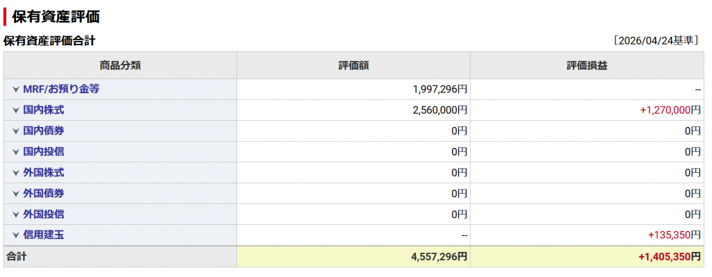 皆さんから、批判を浴びている…ジェイドG(3558)も、ソコソコの成績で既に現物株に変えました。何故なら、時価が1500円なら…その8掛けが「現金担保」換算になります。だから1200円以下で株を買っているなら…「現引き」をすれば、担保率が上がるのです。このモデル口座で、持っているジェイドGの買い単価は1150円前後でしょう。あの時(安値962円)に、「2週間の約束」を待って…買った株です。昨年4月の話です。約1年前の話です。