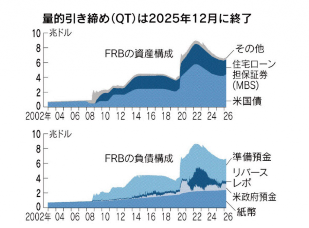 故に…銀行の自己資本比率規制の緩和が効いています。今日の日経新聞にFRBの「負債構成」が載っています。この報道で…「準備預金に付く利息は現在3.65%で、民間銀行が自己資本利益率(ROE)向上を優先すれば他に魅力的な資金の振り向け先はいくらでもある」と言う部分が在ります。だから金融界は、更なる金融緩和のロビー活動をしています。